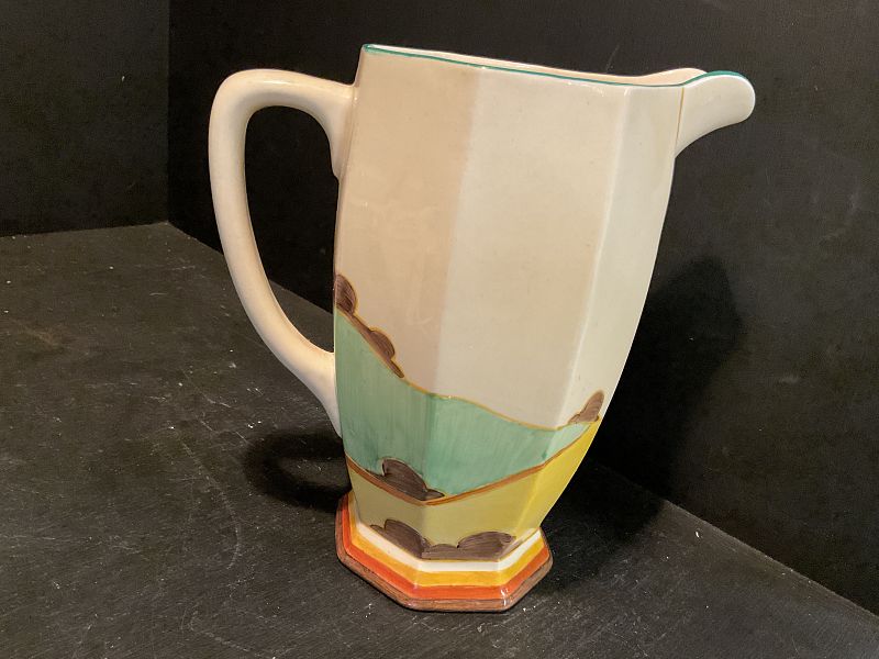 CLARICE CLIFF, SECRETS, an impressive large almost 8” tall ATHENS shape jug in lovely condition.