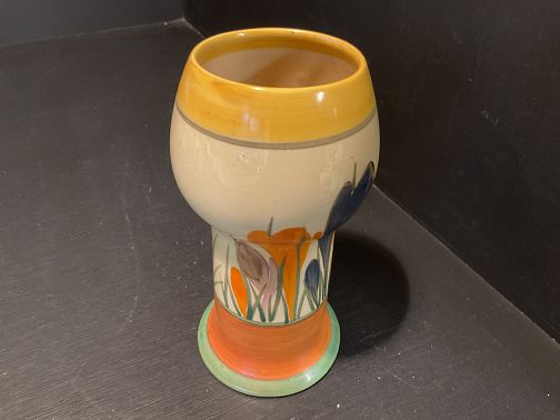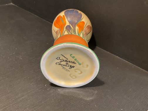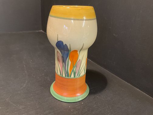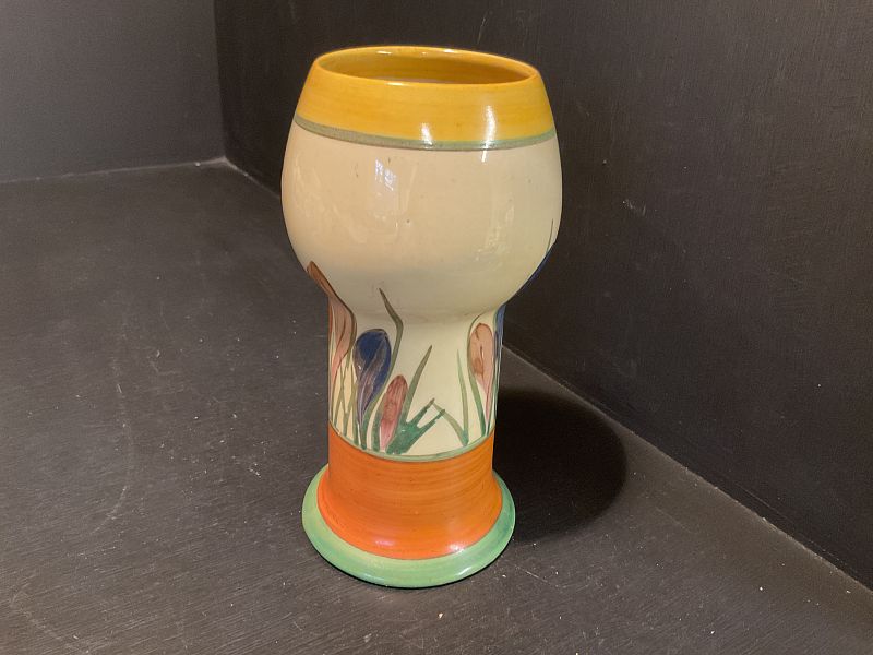 CLARICE CLIFF, a really early and rare shape 269 vase with the desirable hand painted, green Crocus mark, standing just under 6” tall.