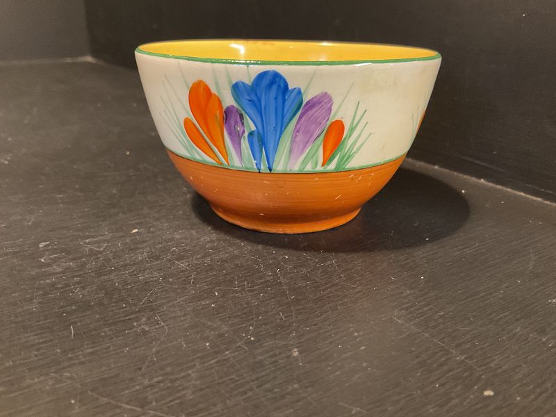 CLARICE CLIFF, “ AUTUMN CROCUS”, a really lovely 3” diameter tankard shape sugar bowl in excellent condition.