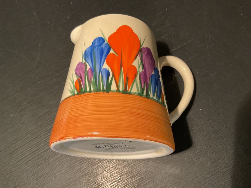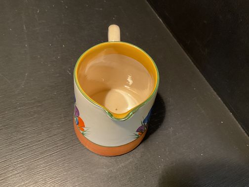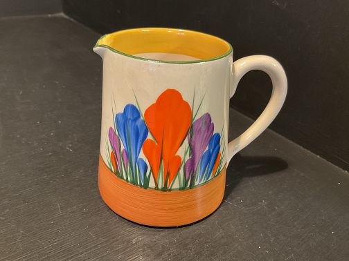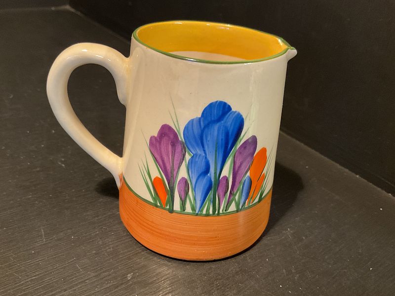 CLARICE CLIFF, AUTUMN CROCUS, a rare, medium size little tankard shape milk jug standing just over 3” tall from a tea for four or six service in exceptional condition.