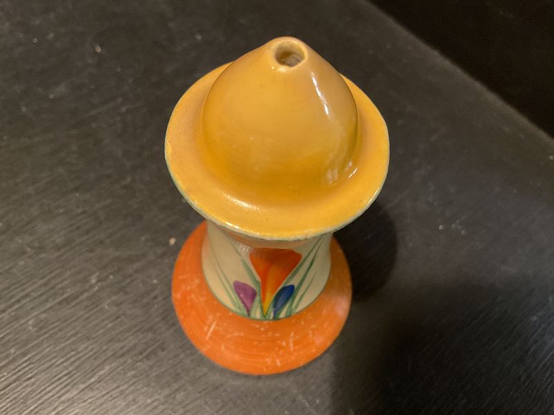 CLRICE CLIFF, AUTUMN CROCUS, a lovely little and early example of a MUFFINEER shape salt pot.
