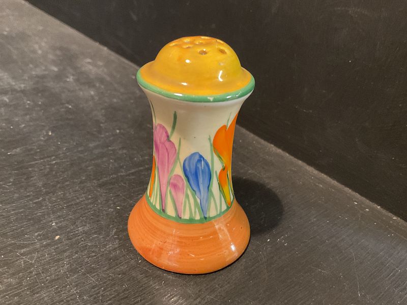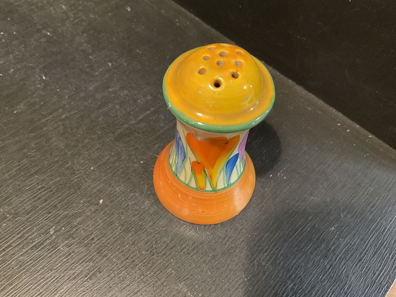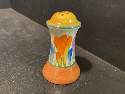 Here is a fantastic and early pepper pot with a continuous run of fabulous flower heads all the way round. In excellent and original condition this is an absolute winning combination, plus it has the desired early green hand painted crocus back stamp too.