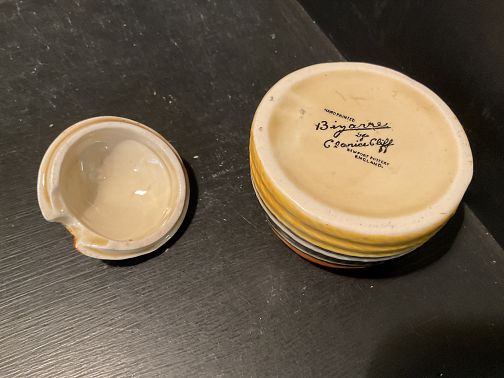 CLARICE CLIFF, LIBERTY STRIPE, a rare, small size beehive honey pot and cover in exceptional condition with no damage and no repairs.