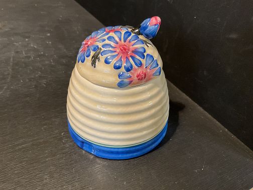 CLARICE CLIFF, MARGUERITE, a lovely large size beehive honey pot and cover in excellent condition.