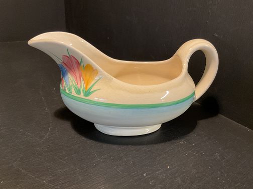 CLARICE CLIFF, SPRING CROUS VARIANT, a lovely gravy or sauce boat, fully signed and in great condition with no damage and no repairs.