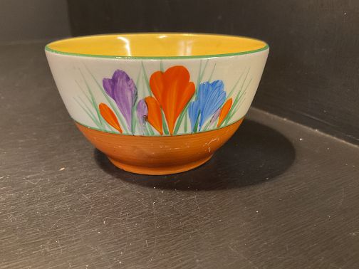 CLARICE CLIFF, “ AUTUMN CROCUS”, a really lovely 3” diameter tankard shape sugar bowl in excellent condition.
