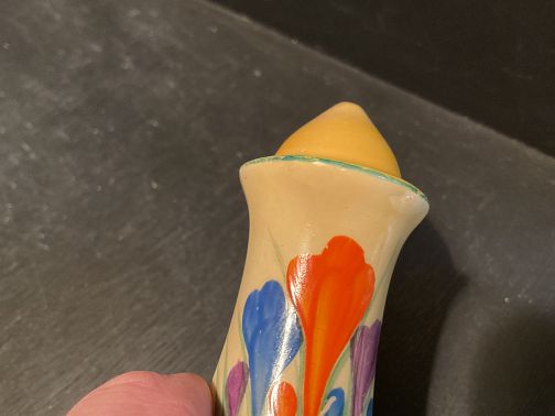 CLRICE CLIFF, AUTUMN CROCUS, a lovely little and early example of a MUFFINEER shape salt pot.