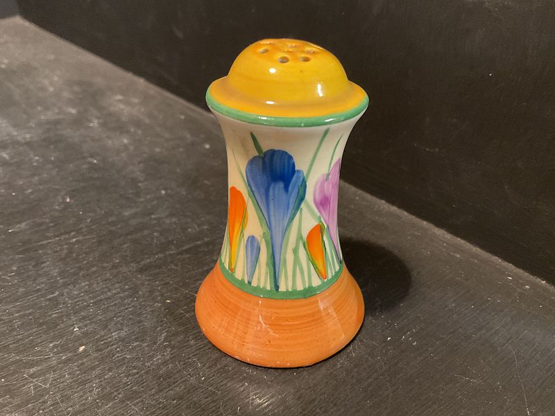 Here is a fantastic and early pepper pot with a continuous run of fabulous flower heads all the way round. In excellent and original condition this is an absolute winning combination, plus it has the desired early green hand painted crocus back stamp too.