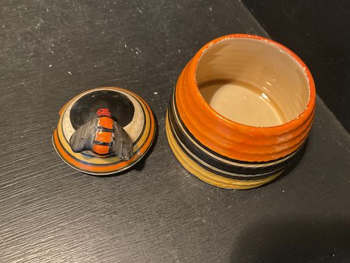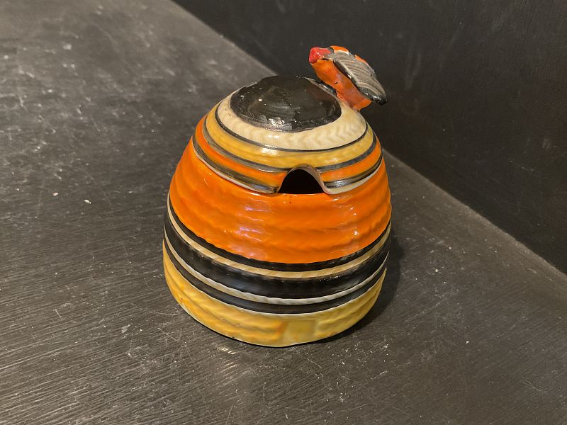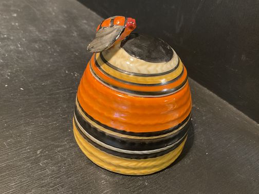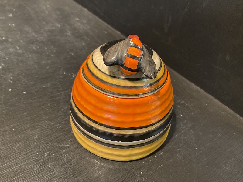 CLARICE CLIFF, LIBERTY STRIPE, a rare, small size beehive honey pot and cover in exceptional condition with no damage and no repairs.