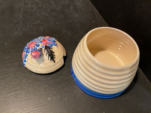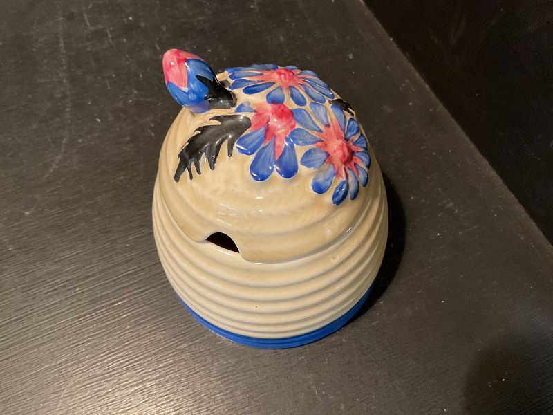CLARICE CLIFF, MARGUERITE, a lovely large size beehive honey pot and cover in excellent condition.