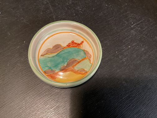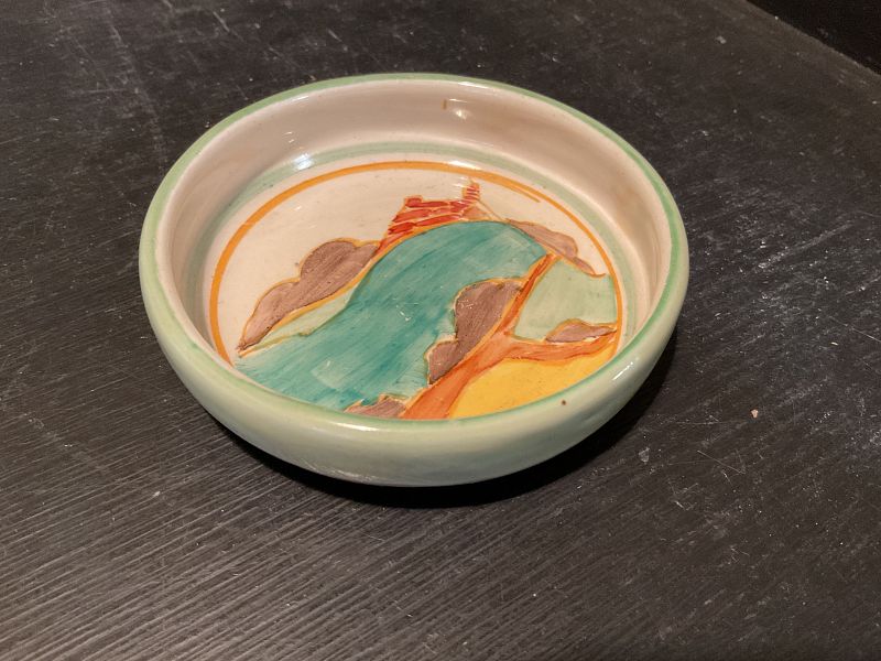 CLARICE CLIFF, SECRETS, a lovely little 3.5” coaster in excellent condition.