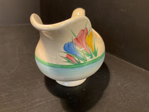 CLARICE CLIFF, SPRING CROUS VARIANT, a lovely gravy or sauce boat, fully signed and in great condition with no damage and no repairs.
