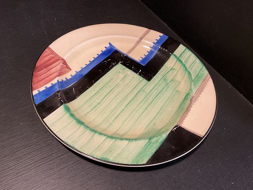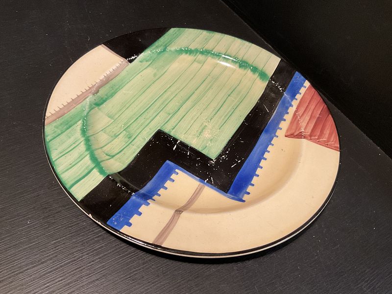 GRAYS, SUSIE COOPER, a rare geometric 8” plate with no chips, cracks or repairs…..bold and brightly hand painted, so typical of the 1930’s.
